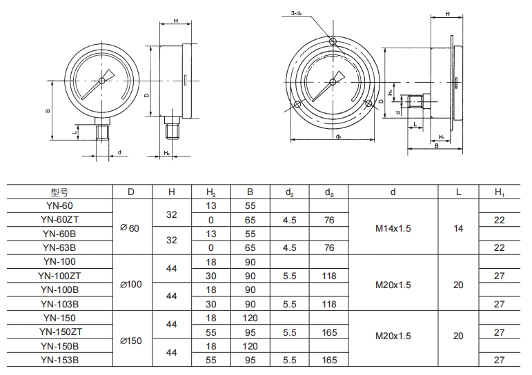 Modelos básicos y parámetros del manómetro resistente a impactos